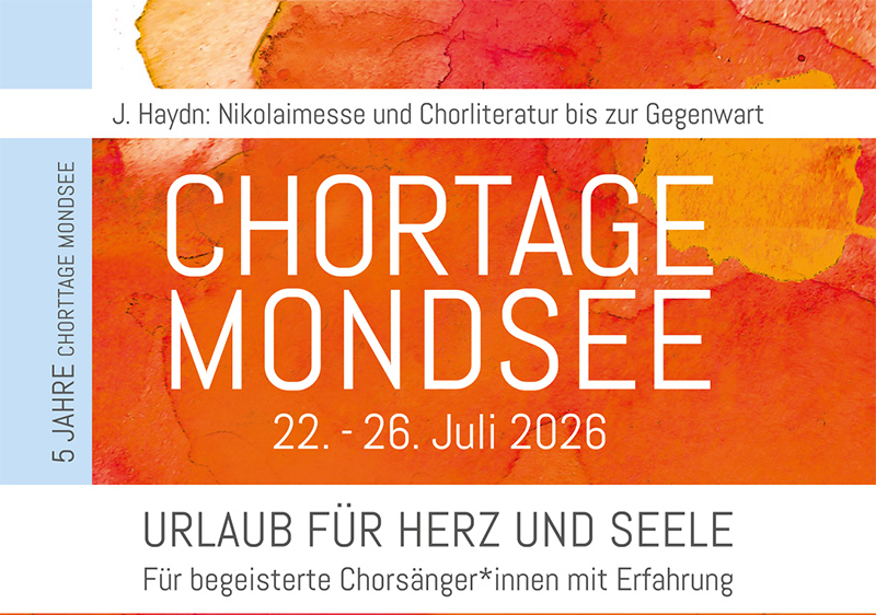 Die CHORTAGE MONDSEE finden zwischen 22. und 26. Juli 2026 statt!