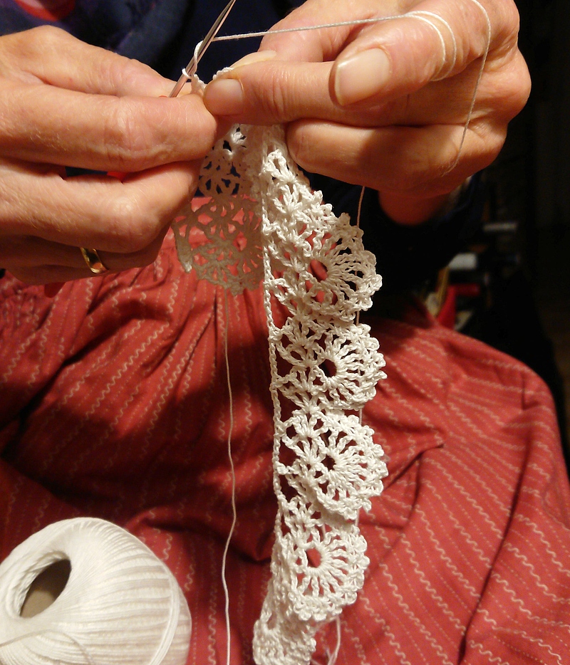 Schöne Spitzen können bei diesem Kurs gehäkelt werden. Die Kursleiterin lehrt besondere Muster für z.B. zur Verschönerung einer Dirndlbluse oder einer Dirndlunterhose.